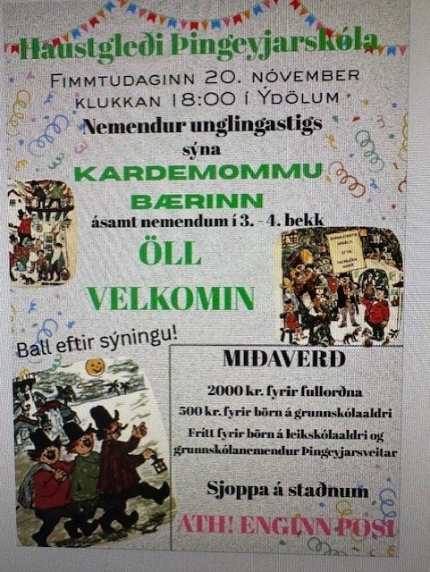Haustgleði Þingeyjarskóla verður haldin fimmtudaginn 20.11.2025 og hefst skemmtunin kl. 18:00.