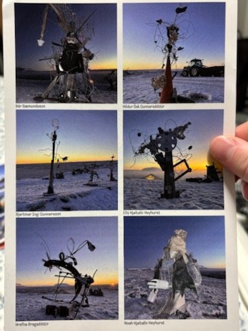 Hrafnkell heimsótti nemendur föstudaginn 14. nóvember og fylgdist með þeim vinna að verkunum. Hann var afar hrifinn af hugmyndaflugi og vinnusemi þeirra. Dagana 22. -23. nóvember heimsóttu nemendur hann síðan á Skútustaði, þar sem þau kláruðu skúlptúrana með aðstoð fleiri aðila (Hrafnkell, Láki á Skútustöðum, Sigurlína og Georgia frá HULDU, Gaza sem tók heimildamyndina) sem komu til liðs við verkefnið.